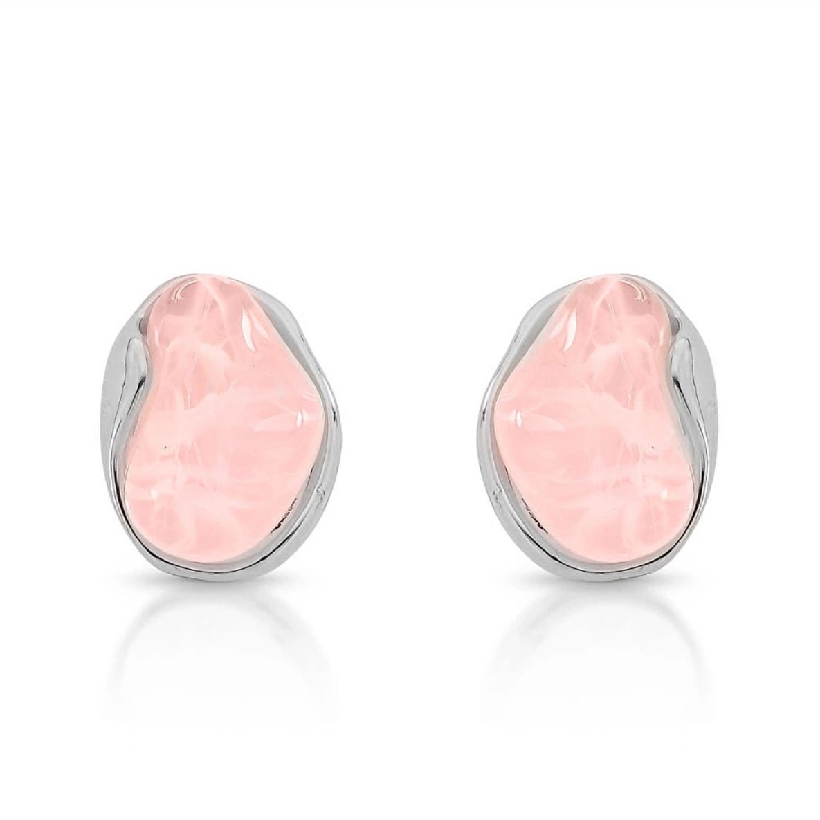 Brinco de acetato rosa, italiano, banhado em Ródio Branco e camada de verniz diamond.