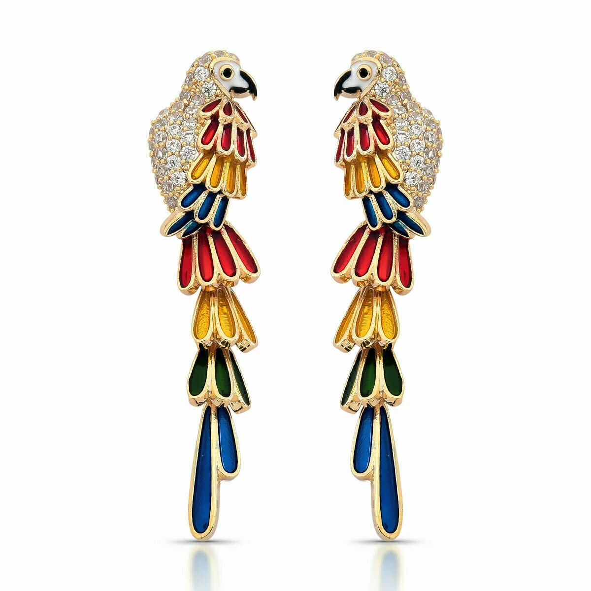 Brinco de Arara colorida retratando o Brasil, com design próprio!! Banho de ouro 18k e pino de prata 925, com resina tipo A.