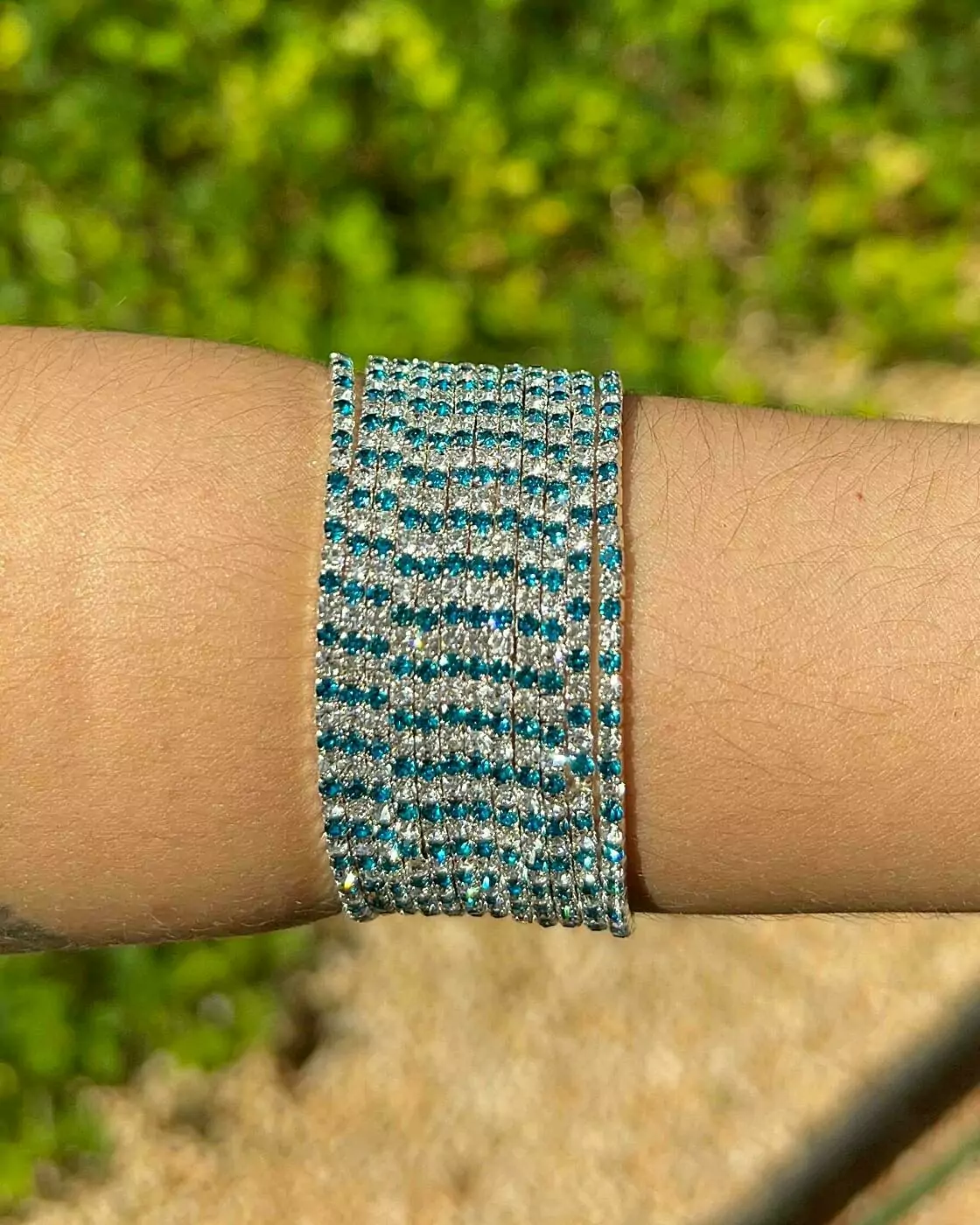Cor: azul listrado. Contém 12 pulseirinhas no kit. Cravadas em cristais de Swarovski.